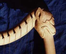 Die Vorlage dieses Instrumentes ist eine Skulptur aus dem 12. Jahrhundert am Hauptportal der Kathedrale von Santiago de Compostela, dem Portico de la Gloria. Getreu der Vorlage ist es mit einem geschnitzten Löwenkopf und einer Klaue verziert.